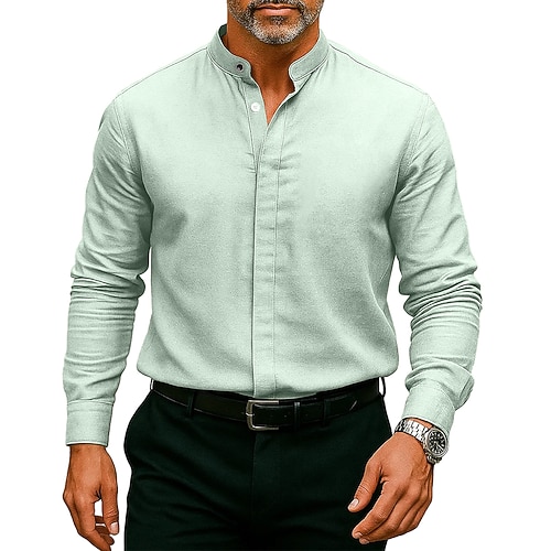 Per uomo Camicia Camicia elegante Camicia con colletto alla coreana Semplice Matrimonio All'aperto Nero Bianco Vino Blu Manica Lunga Colletto Mao N / D Abbigliamento Tasca