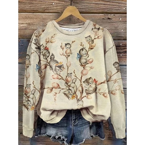 Per donna Felpa Pullover Grafico Animale Casual Manica Lunga Girocollo Top Regolari Streetwear Abbigliamento Quotidiano Casuale Patchwork Giallo Vino Beige Autunno Inverno