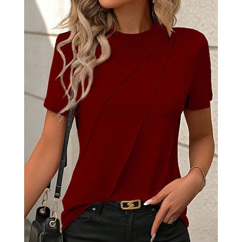 T Shirt Donna Colore Solido Moda Moderna Casual Manica Corta V Collo Top Regolari Quotidiani Weekend Cerniera Nero Bianco Rosa Vino Blu Reale Estate