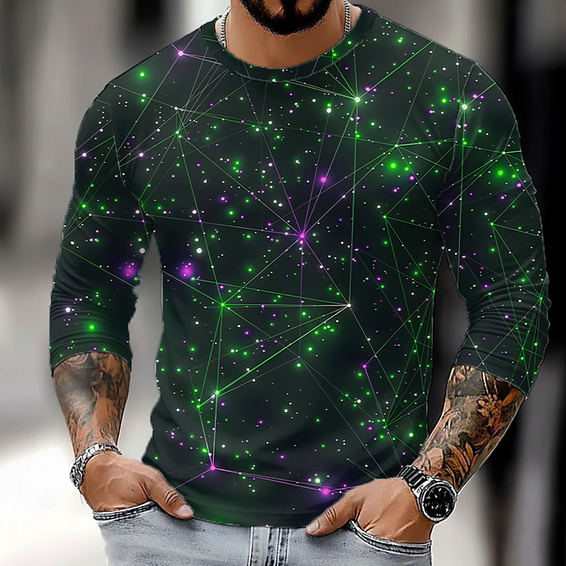 Men's Geometric T Shirt Long Sleeve T shirt 3D Print Crew Neck Shirt Daily Designer Street Casual Yellow Blue Purple Summer Spring Fall Clothing Apparel S M L XL XXL XXXL