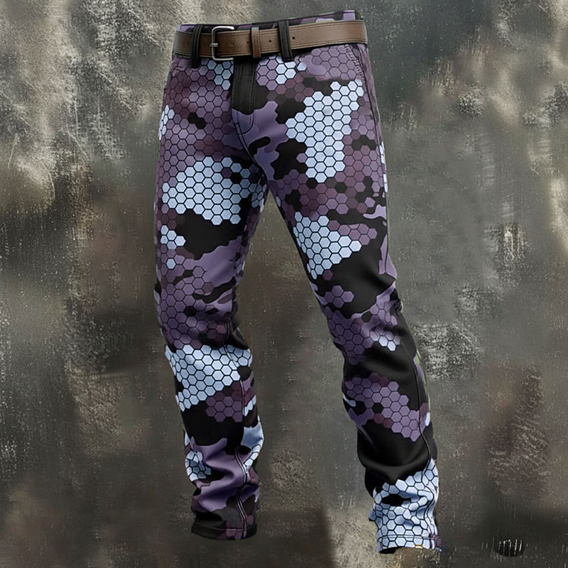 Men's Geometric Camo Camouflage Trousers Dress Pants Suit Pants Mid Waist Casual Outdoor Vacation Slim Fit Pants with Pockets Spring Fall 3D Print Purple Green Army Green