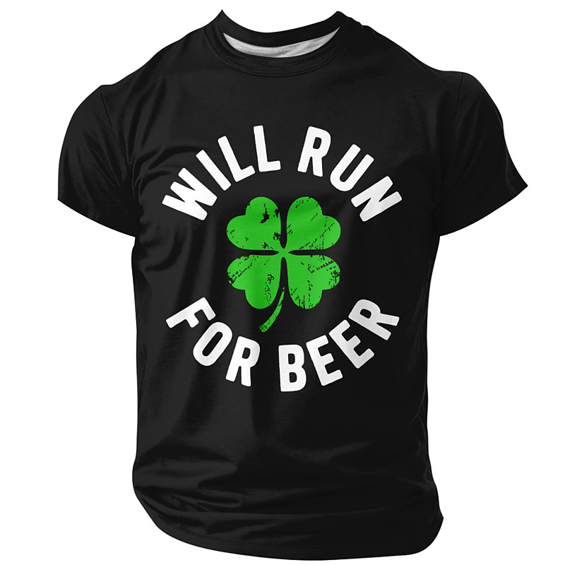 St Patricks Day Will Run For Beer Funny Irish Shamrock Green Mens Short Sleeve T Shirt Clothing Apparel S M L XL XXL XXXL