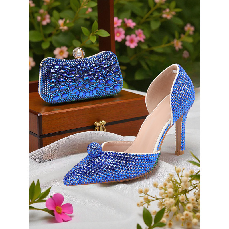 Women's Champagne Rhinestone Stiletto Heels and Clutch Bag Set – Elegant Pointed Toe High Heel Shoes for Wedding, Prom, and Evening Parties