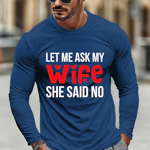 San Valentino Per uomo Gergo divertente moglie Maglietta Manica Lunga maglietta Stampa 3D Girocollo Camicia Moda Quotidiano Essenziale Casuale Quotidiano Streetwear Blu Nero Verde Estate Primavera