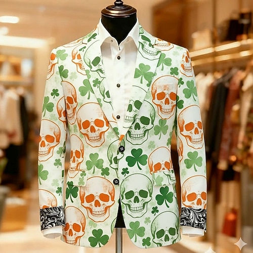 San Patrizio Per uomo Quadrifoglio Giacca blazer Cappotto Di tendenza Confortevole Traspirante Artistico Casual Quotidiano Abbigliamento da sera Festival Stampa 3D Bottoni Multi-tasche Tutte le