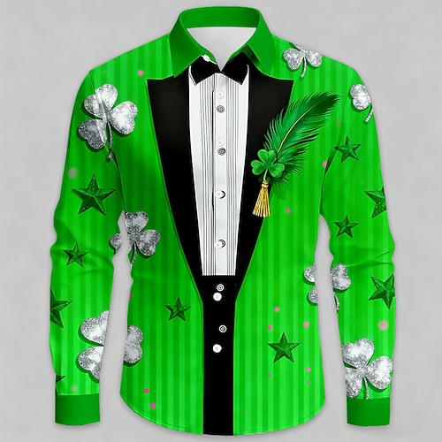 Festa di San Patrizio Per uomo Trifoglio Colletto finto e design del vestito Camicia Camicia con Bottoni Manica Lunga Moda Casual Feste Ferie Primavera Autunno Collo ripiegato Stampa 3D camicie con