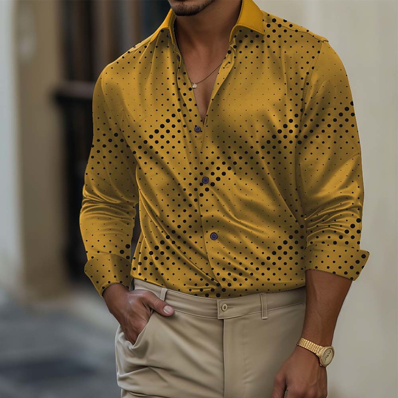 Men's Geometric Polka Dot Gradient Color Shirt Satin Shirt Dress Shirt Long Sleeve Business Casual Vacation Dailywear Summer Spring Fall Turndown 3D Print Button Up Shirts Blue Black White Yellow