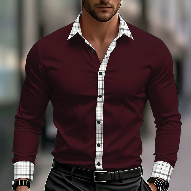 Men's Geometric Grid / Plaid Shirt Button Up Shirt Casual Dress Shirt Long Sleeve Fashion Casual Outdoor Dailywear Spring Fall Turndown 3D Print Collared Shirts Blue Black White Wine Dark Blue