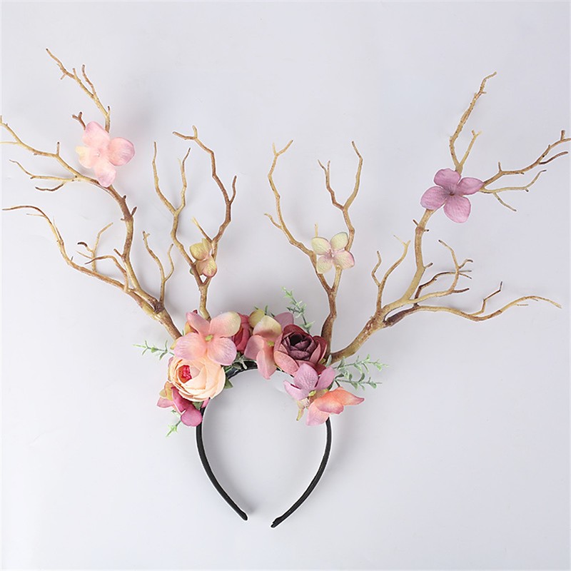 1pc Simulation Tree Antlers Hair Hoop Flowers Tree Headband For Women Cosplay Christmas Festival Birthday Party