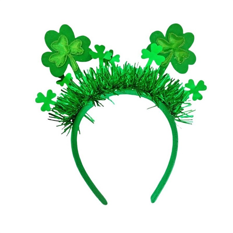 St. Patrick's Day Headband for Women and Kids, Green Tinsel Shamrock Boppers, Lucky Irish Clover Antenna Hair Hoop, Costume Accessories