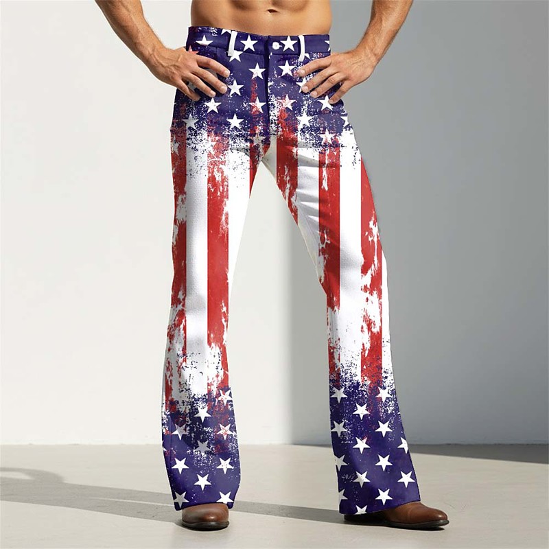 Retro Vintage 1970s Groovy Bell Bottom Pants Flared Trousers Disco mid rise Psychedelic Fancy Dress Men's Halloween Carnival Vacation Music Festival Festival Adults' Pants