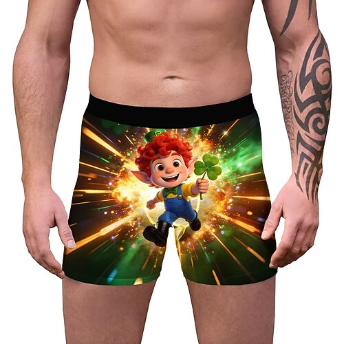 San Patrizio 2026 Leprechaun Trifoglio Irlandese fortunato Carnevale Boxer aderenti Biancheria intima Cosplay Adulti Per uomo Giorno di San Patrizio Casuale Feste Costume di Carnevale facile Vestirsi
