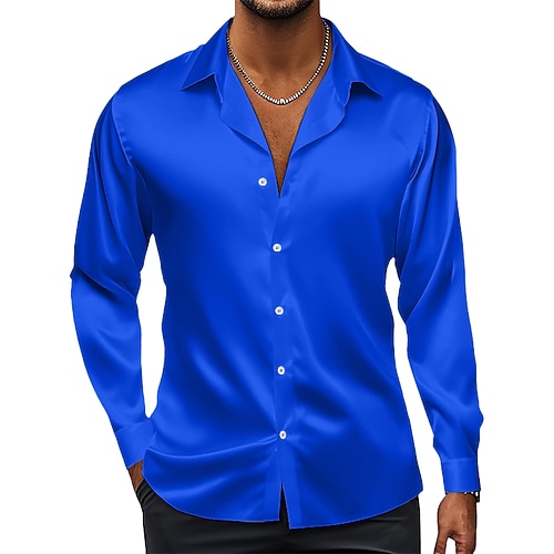 Per uomo Camicia Camicia in raso Camicia casual Camicia con Bottoni Camicie sbottonate Semplice Quotidiano Uscire Blu chiaro Nero Bianco Vino Manica Lunga Bavero Primavera Autunno Tutte le stagioni