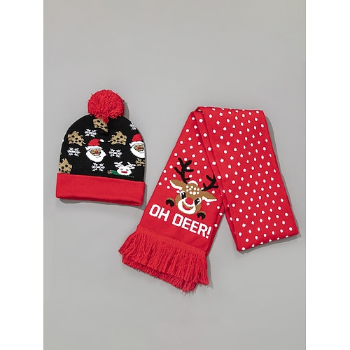 Set di cappello e sciarpa natalizi da donna in maglia, motivo renna, molteplici fantasie, comodo e festoso per feste e abbigliamento invernale