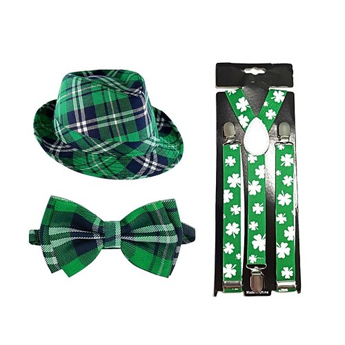Set di accessori per feste irlandesi per uomo, donna e bambino, con cappello a quadri verdi e papillon per il giorno di San Patrizio