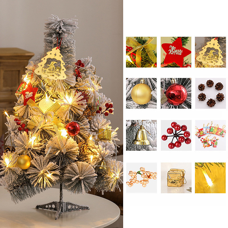 Mini DIY Christmas Tree Ornament 50-60cm Desktop Christmas Tree Decor Xtmas Tree Ornament With Lights Gold Red Suit Decorate Christmas Lights