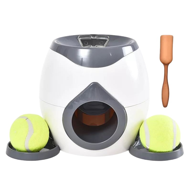 Automatic Dog Ball Launcher, Dog Ball Thrower Machine with 2 Tennis Balls, Indoor/Outdoor Interactive Dogs Toy Food Reward Machine, Intelligent Automatic Feeder for for Small Medium Dogs