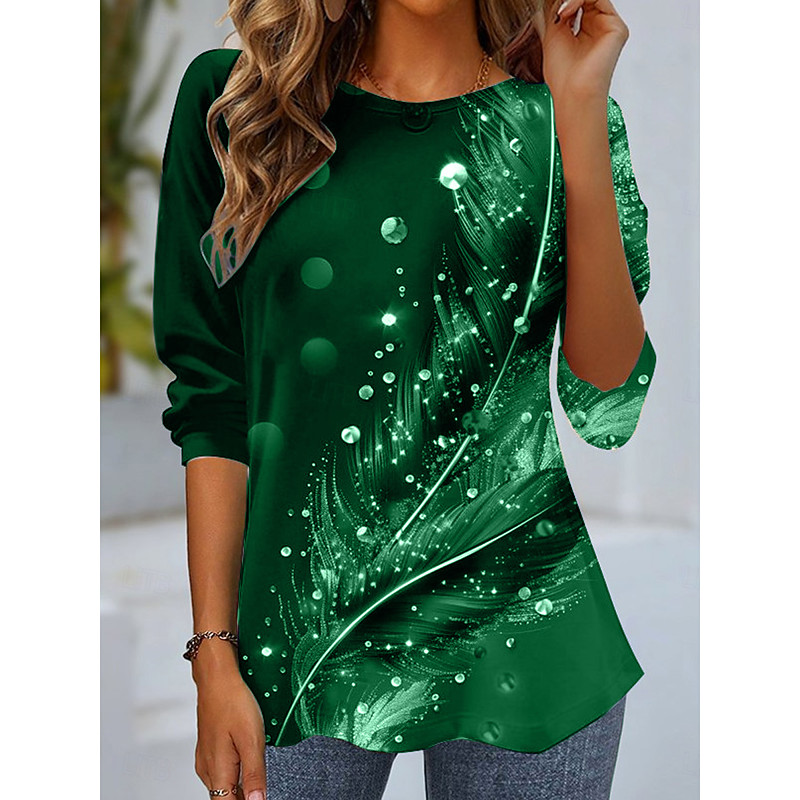Women's T shirt Crew Neck Long Sleeve Tunic Casual Print Regular Tops Daily Blue Purple Green Spring Fall