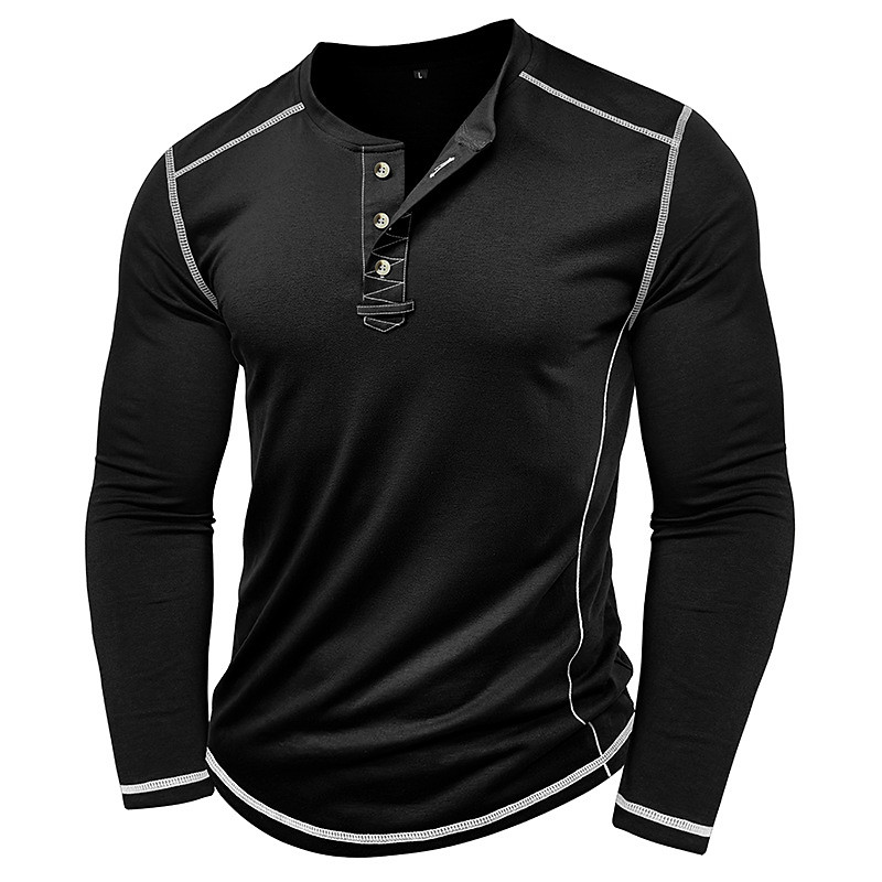 Men's T Shirt Henley Shirt Henley Top Long Sleeve Solid Color Vintage Casual Contrast Stitching Henley Outdoor Causal Casual Spring Fall Spring Fall Black White Gray Henley T-Shirt