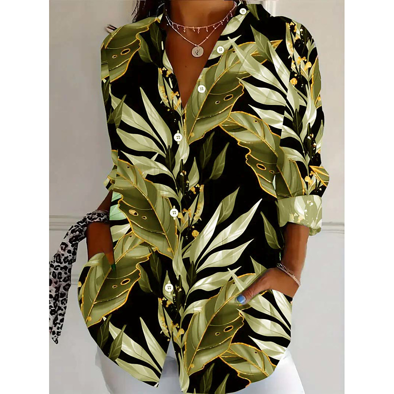 Women's Shirt Blouse Graphic Daily Stylish Retro Vintage Long Sleeve 3/4 Length Sleeve Shirt Collar Long Tops Daily Holiday Going out Buttons Black Red Brown Green Spring Fall Winter Spring, Fall
