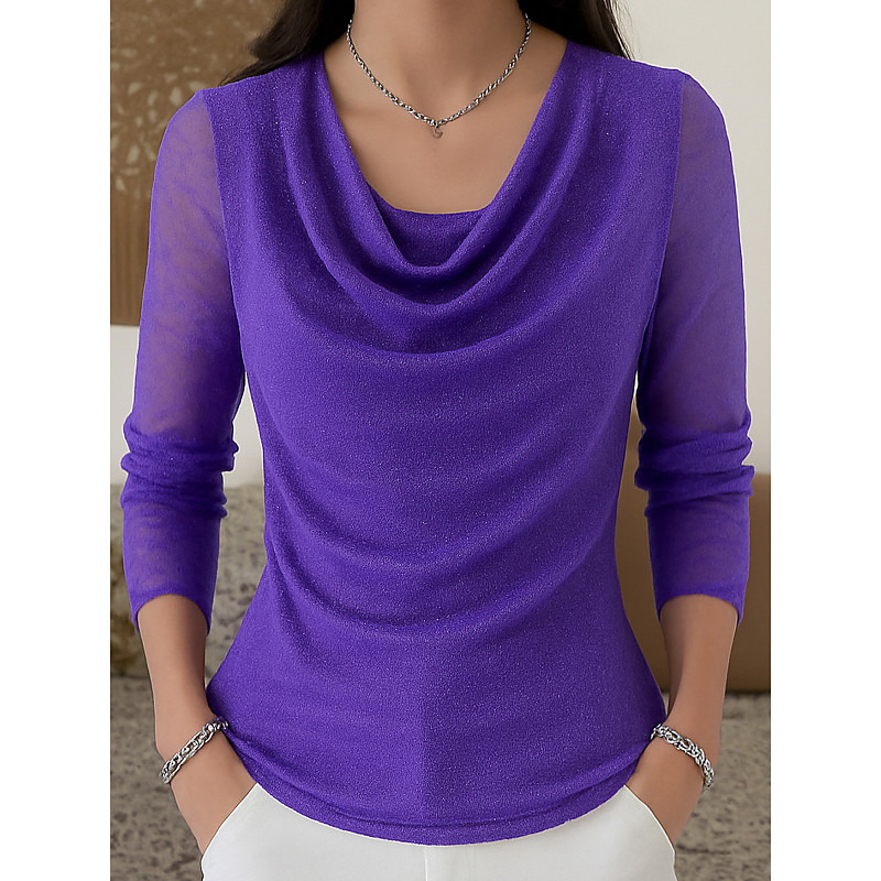 Women's Shirt Elegant Stylish Basic Long Sleeve Regular Tops Black Yellow Red Blue Purple Spring, Fall, Winter, Summer