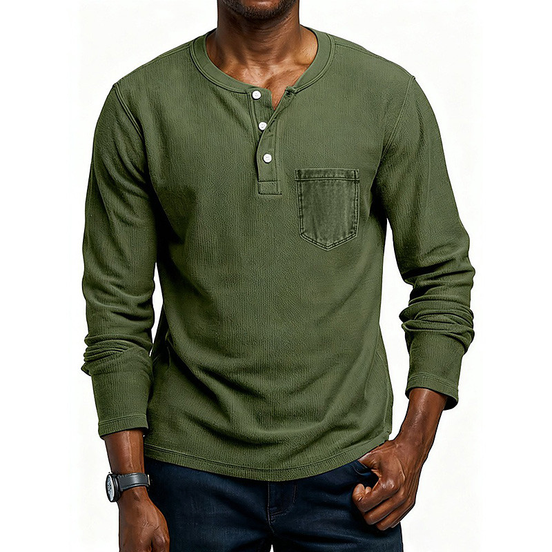 Men's T Shirt Henley Shirt 100% Cotton Acid Wash Shirt Long Sleeve Solid Color Vintage Casual Plain Henley Outdoor Causal Casual Spring Fall Spring Fall Black Gray Light Blue Henley T-Shirt