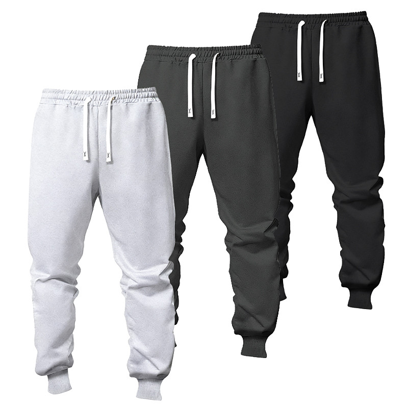 Multi Packs 3pcs Men's BlackNavy BlueLight Grey Sweatpants Trousers Drawstring Elastic Waist Plain Vacation Daily Wear Polyester Spring