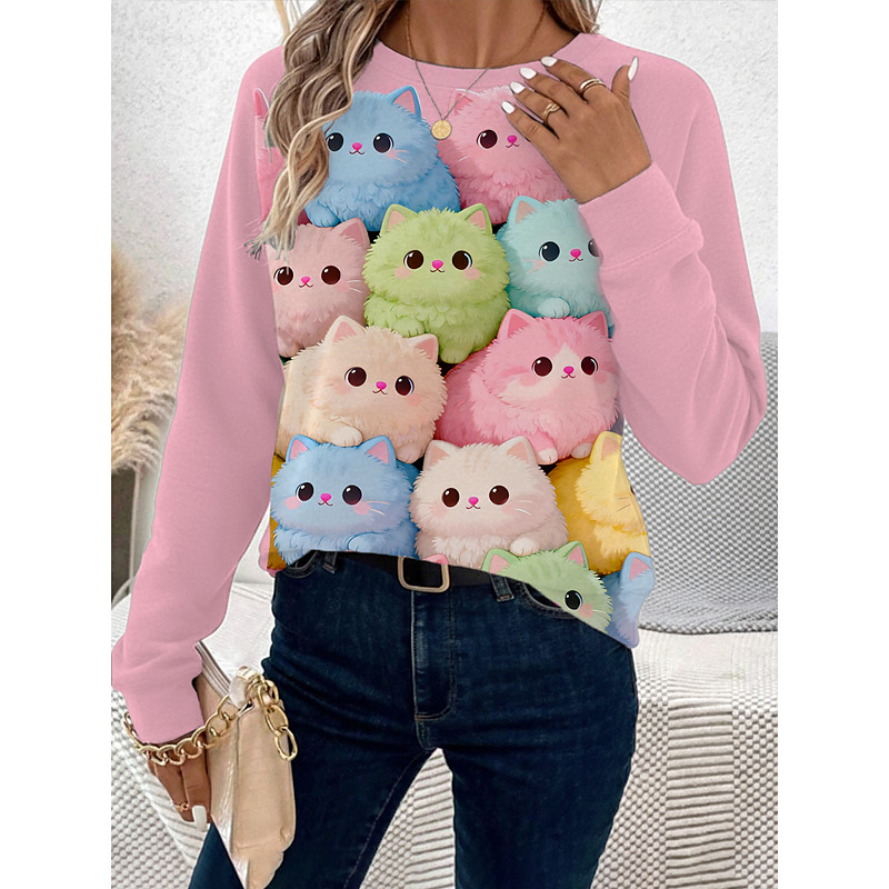 Women's Pullover Sweatshirt Graphic Casual Long Sleeve Crew Neck Regular Tops Street Dailywear Casual Pink Spring Fall Winter
