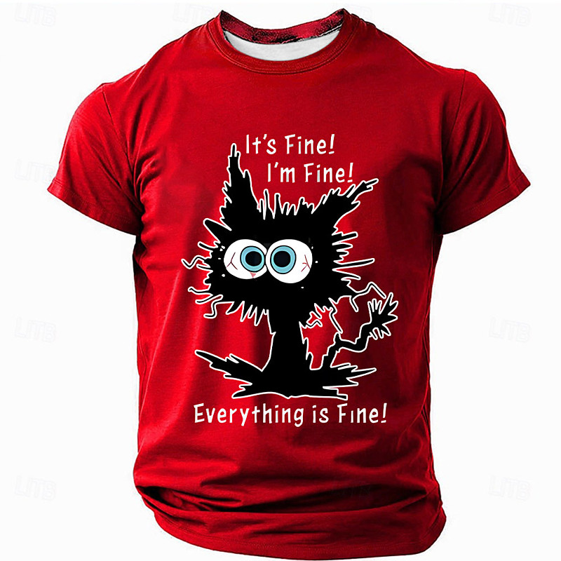 Its Fine Im Fine Everything Is Fine T Shirt Funny Frazzled Cat Graphic Tee Sarcastic Mental Health Humor Chaos Gift Clothing Apparel S M L XL XXL XXXL