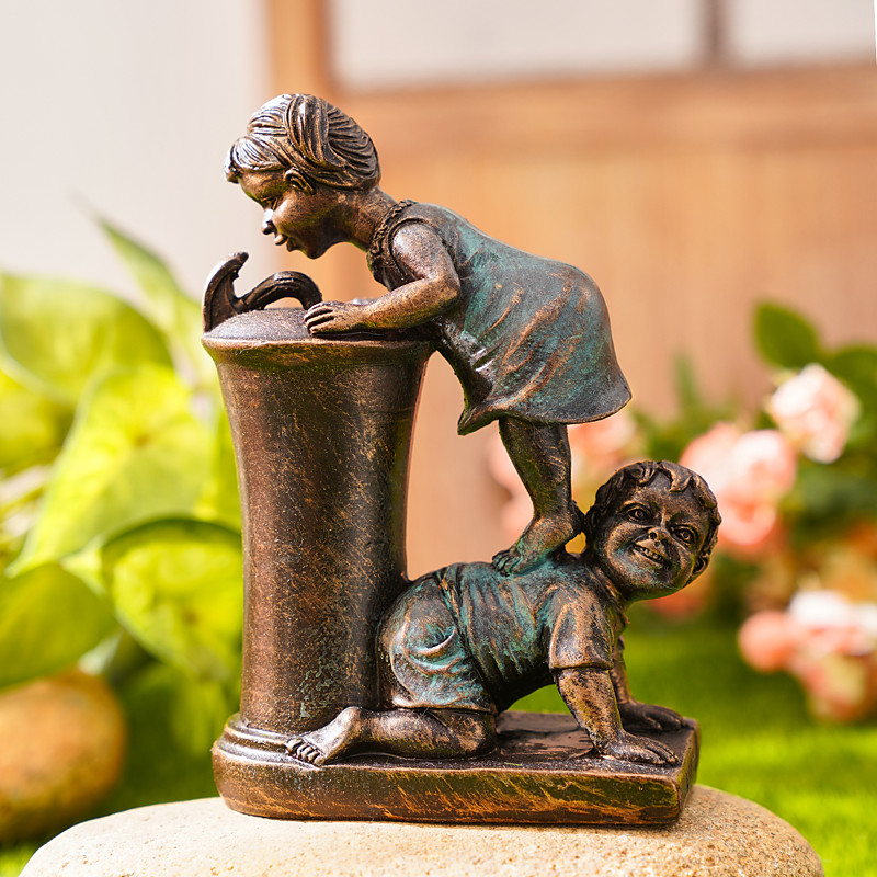 Garden Water Fountain Statue Fluorescent Light at Night Childish Whimsy Antique Bronze Fountain Sculpture Landscaping Decoration for Garden Lawn Patio Balcony Art Decor
