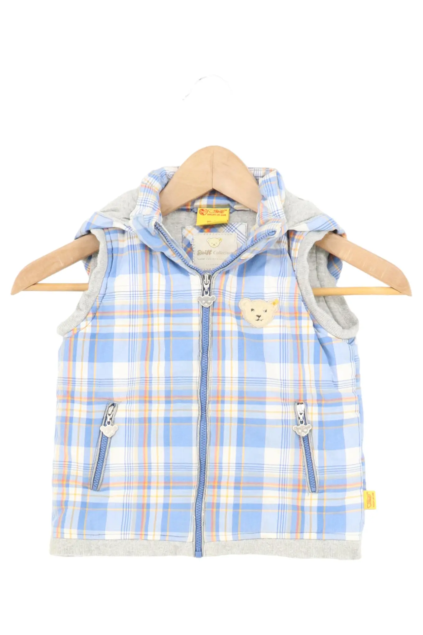 STEIFF Steppweste Kinder Gr. 98 Blau Kariert Ärmellos Baumwolle