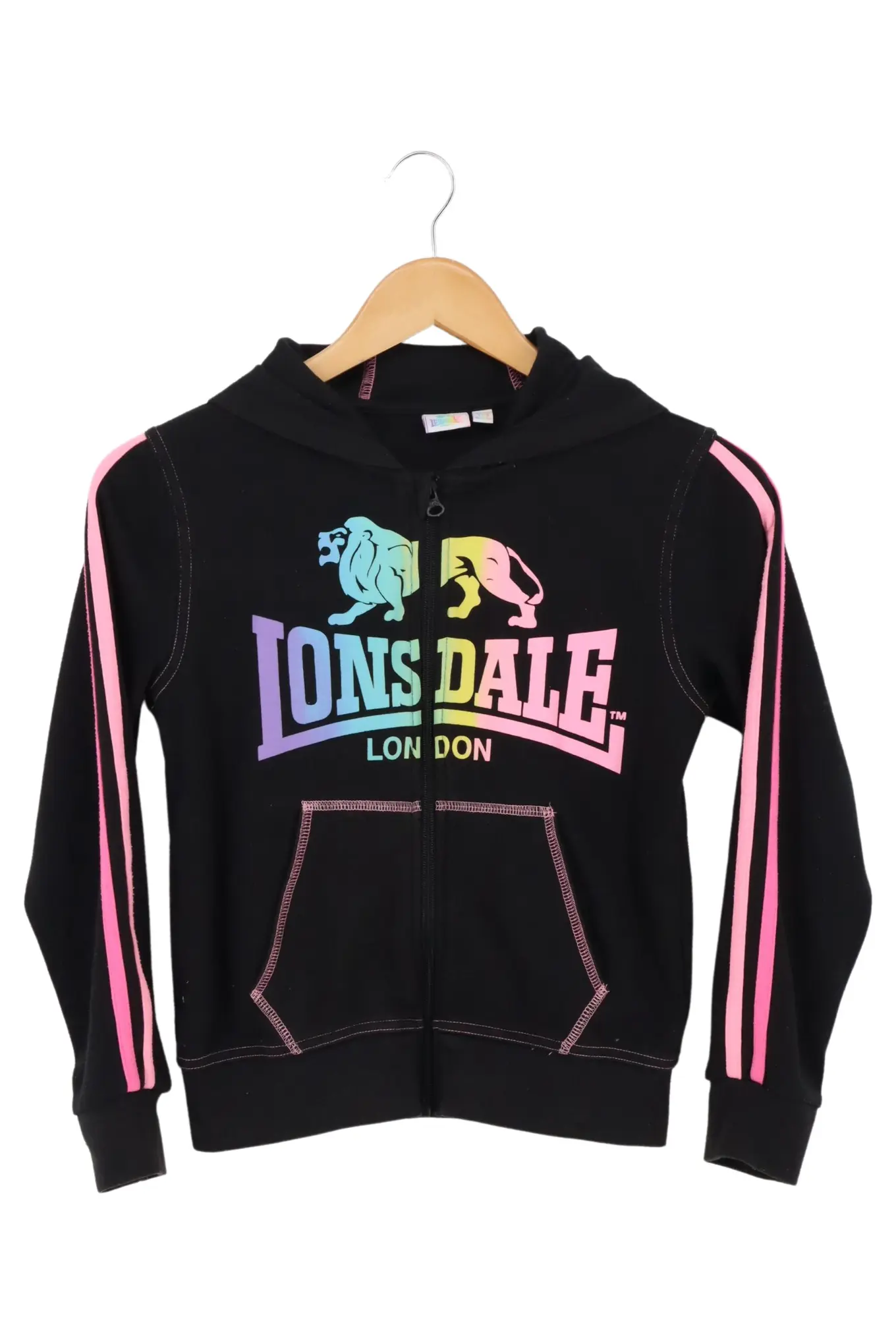 LONSDALE Kinder Sweatjacke Gr. 146 Schwarz Kapuze Logo