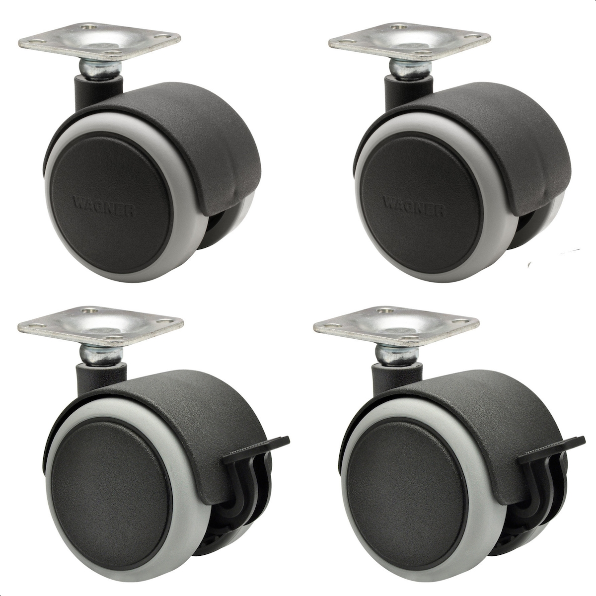 Rocarr RUOTA GEMELLATA Ø 35 mm PORTATA 12 kg POLIPROPILENE NERO SUPPORTO A PIASTRA GIREVOLE