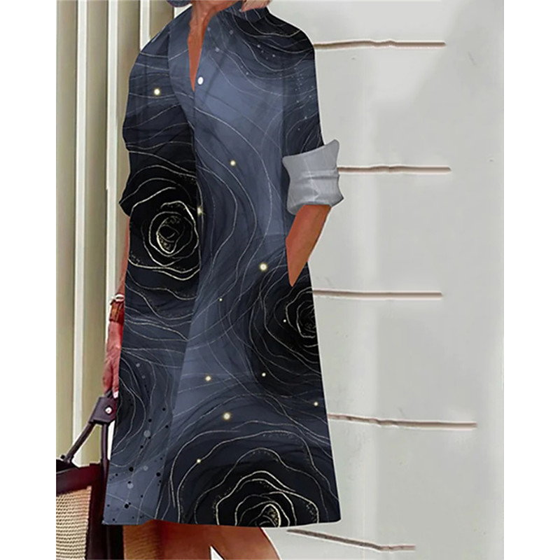 Women's Midi Dress Shirt Dress Casual Dress Fashion Modern Daily Beach Weekend Regular Fit Flower Long Sleeve Shirt Collar Blue White Pink Red Spring Fall