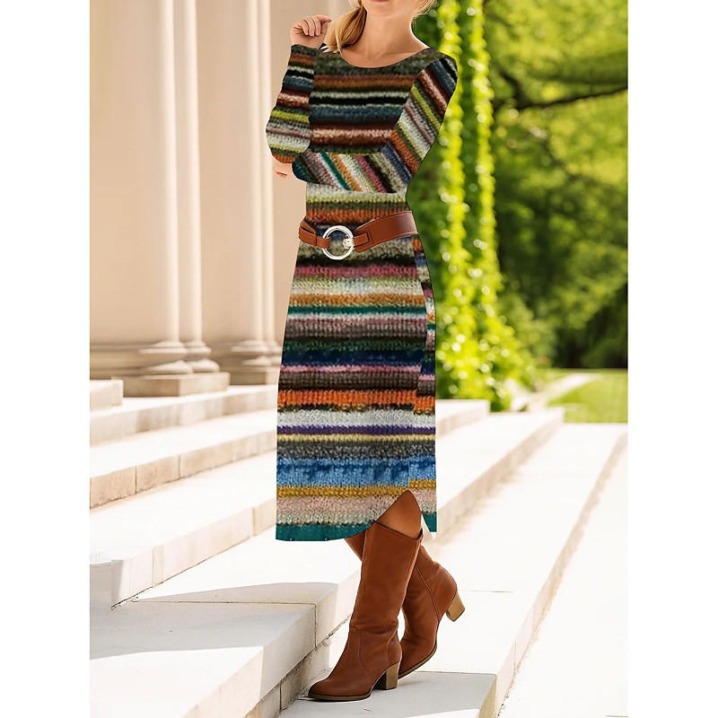 Women's Midi Dress Sheath Dress Shift Dress Casual Daily Regular Fit Floral Graphic Geometric Long Sleeve Crew Neck Rainbow Spring Fall Winter Autumn
