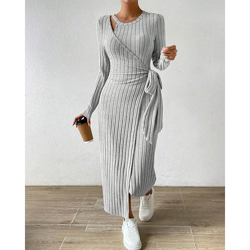 Women's Midi Dress Sweater Dress Sheath Dress Fashion Modern Daily Vacation Going out Regular Fit Plain Long Sleeve Crew Neck Grey Spring Fall