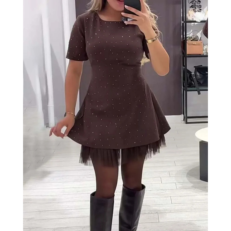 Women's Mini Dress Sequin Dress Cocktail Dress Elegant Dress Fashion Modern Evening Party Cocktail Party Regular Fit Plain Short Sleeve Crew Neck Blue Silver Black gray Black Summer Spring