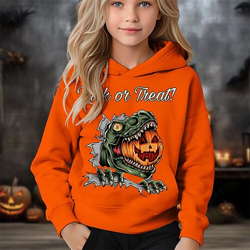 Halloween Jungen 3D Kürbis Dinosaurier Kapuzensweatshirt Langarm Frühling Herbst Mode Streetwear Kinder 4-12 Jahre Mit Kapuze Outdoor Lässig Täglich Normale Passform