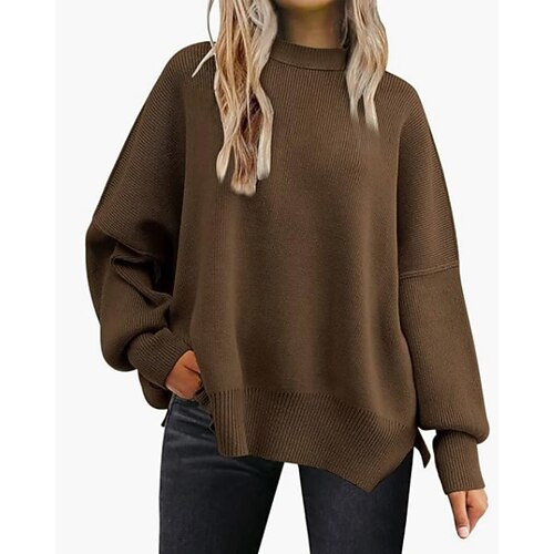 Per donna Felpa Maglione Casual Tinta unica A Coste Girocollo Lavorato a maglia Manica Lunga Top Regolari Maglia Uscire Weekend Nero Bianco Autunno