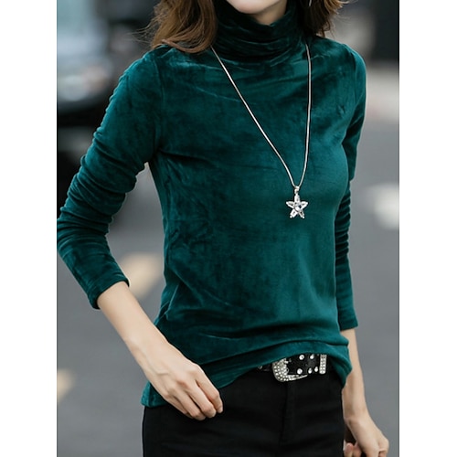 Per donna Blusa Tinta unica Elegante Essenziale Casual Manica Lunga Dolcevita Top Regolari Quotidiano Arricciato Nero Rosso Viola Verde Grigio Autunno Inverno