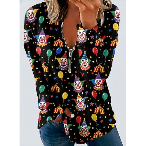 Per donna Felpa Pullover Felpe con cerniera Grafico Moda Casual Manica Lunga Girocollo Top Regolari Streetwear Abbigliamento Quotidiano Casuale Cerniera Stampato Nero Primavera