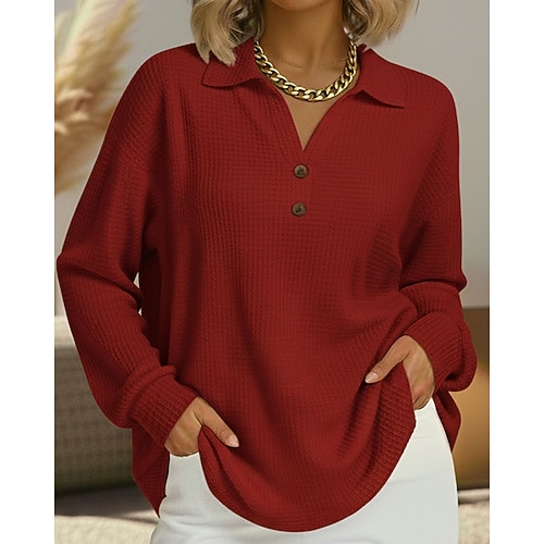 Per donna Cardigan Quotidiano Colletto a Camicia Bottoni Manica Lunga Top Regolari Maglia Lavoro Ferie Rosso bordeaux Nero Primavera Autunno