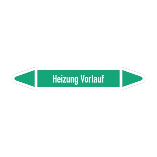 Aufkleber I RKZ-Etikett Heizung Vorlauf,DIN 2403,grün/weiß,für Ø 40-60mm,218x37mm,5/Bogen