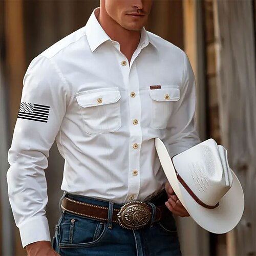 Per uomo Bandiera Americana Camicia da lavoro Camicia Western Camicia cargo Manica Lunga Pantaloni Tattici Vintage Retrò Sport all'Aperto Abbigliamento da lavoro Primavera Autunno Collo ripiegato Due