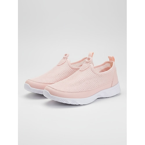 scarpe da ginnastica slip-on da donna in Flyknit rosa con suola bianca: scarpe da passeggio leggere e casual per il fitness, i viaggi e l'uso quotidiano