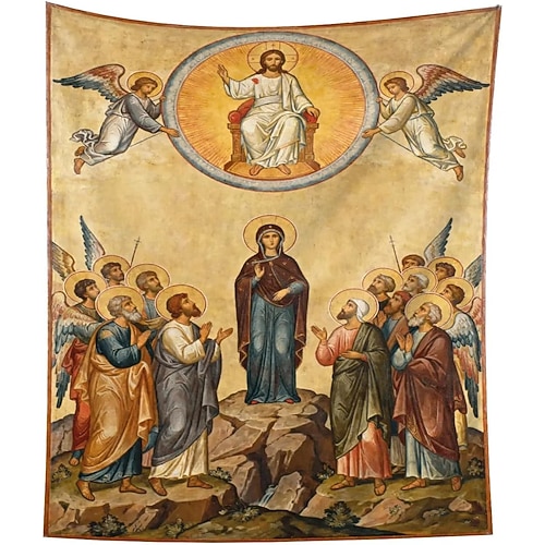 arazzo religioso con figure sacre e angeli, arazzo spirituale da parete, decorazione d'arte sacra per sala di preghiera, camera da letto, soggiorno e atmosfera serena della casa