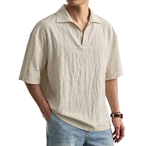 Per uomo Camicia di lino Polo Casuale Vacanza Classico Manica Corta Moda Tinta unica Bottoni Puro Estate Primavera Vestibilità regolare Nero Bianco Verde chiaro Blu marino Cachi Grigio Camicia di lino