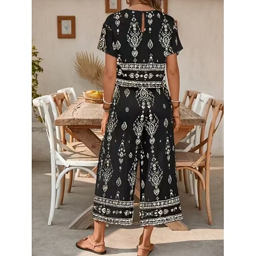 Per donna Set di Pantaloni Manica Corta Girocollo Floreale Grafico Stampato Moda Streetwear Casuale Quotidiano All'aperto Nero Marrone Verde Estate Vestibilità regolare