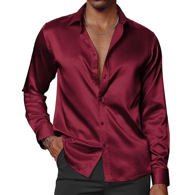 Men's Shirt Satin Shirt Dress Shirt Casual Shirt Button Up Shirt Untucked Shirts Plain Formal Wedding Black White Wine Green Long Sleeve Lapel Spring Fall All Seasons Clothing Apparel Plain