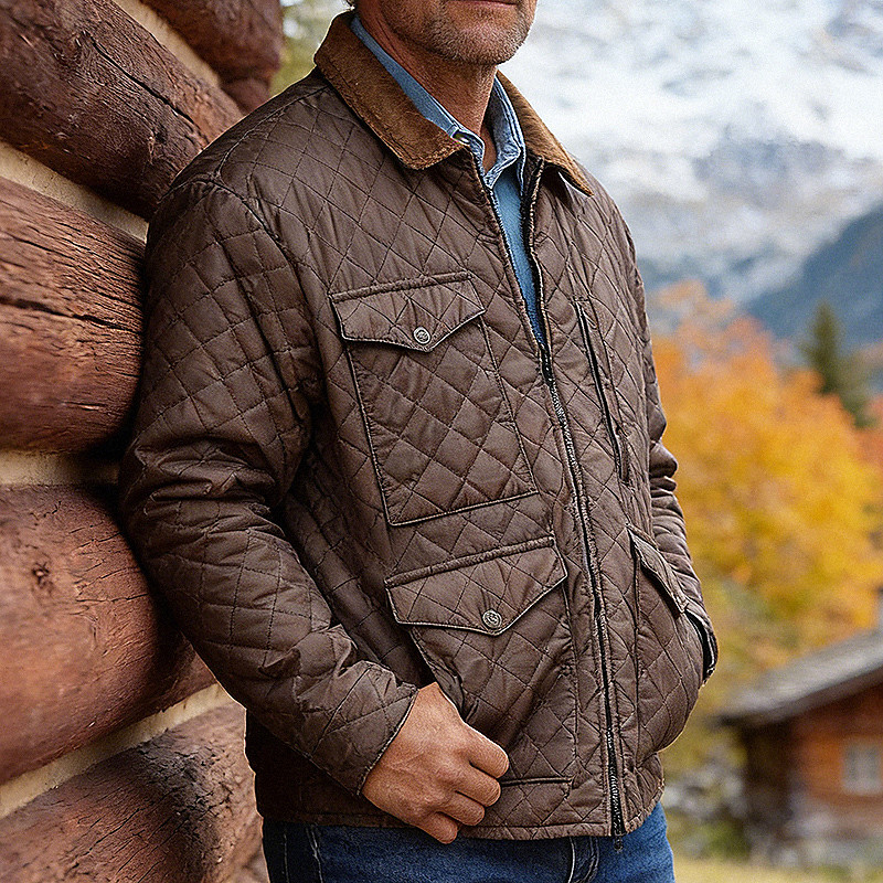 Men's Quilted Jacket Casual Jacket Daily Outdoor Pocket Fall Winter Plain Vintage Streetwear Lapel Regular Brown Jacket